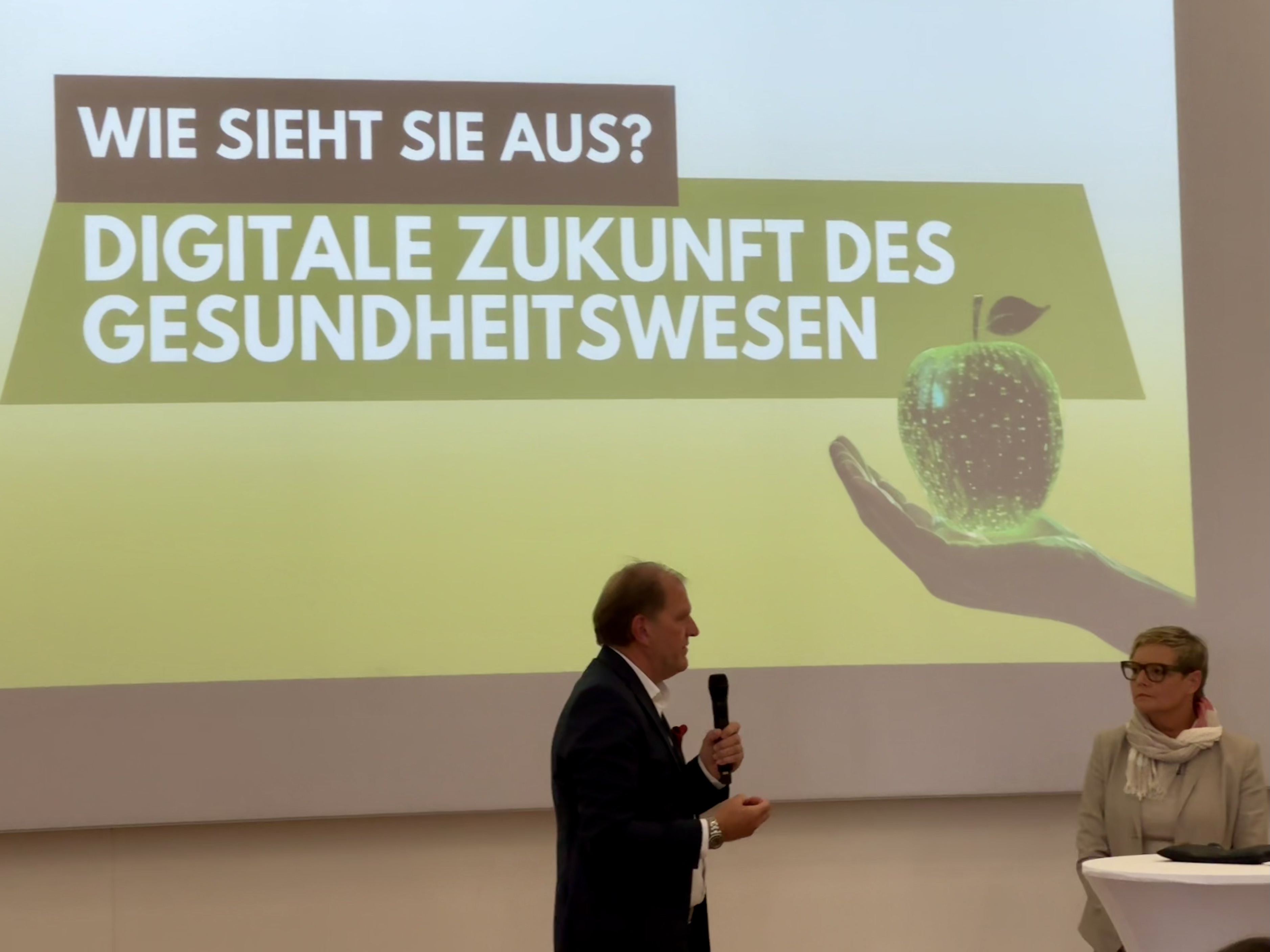 Dr. Mario Paul eröffnete als Bürgermeister der Stadt Lohr die Veranstaltung mit einer herzlichen Begrüßung, gefolgt von einem digitalen Grußwort der StM’in Judith Gerlach, MdL, die die Bedeutung der Digitalisierung im Gesundheitssektor betonte. Aktuelle Einwohnerzahl der Stadt Lohr beträgt 16.000, rund 2.000 Mitarbeiter sind im Gesundheitswesen tätig, so die Zahlen von Dr. Paul.