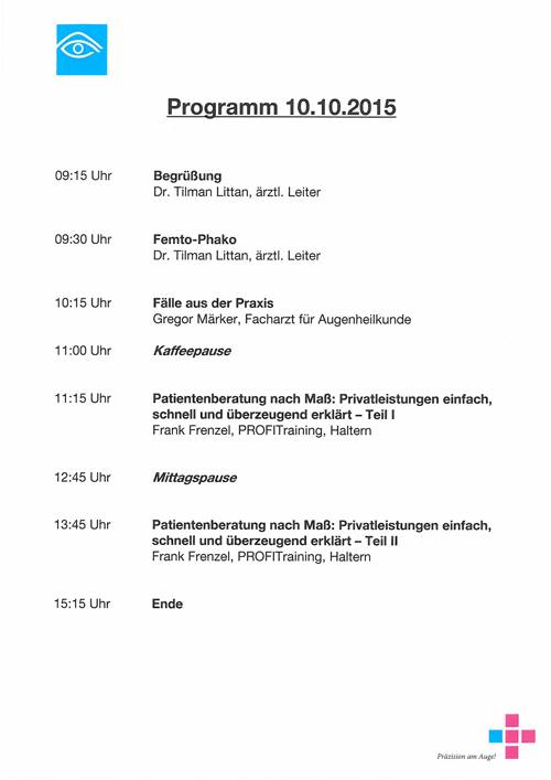 Nicht nur unsere zuweisenden Augenärzte auch deren Mitarbeiter/innen werden regelmäßig in unsere Klinik eingeladen. Das Programm der diesjährigen Fortbildung wurde von Dr. Tilman Littan, Gregor Märker und dem externen Referenten Frank Frenzel gestaltet.