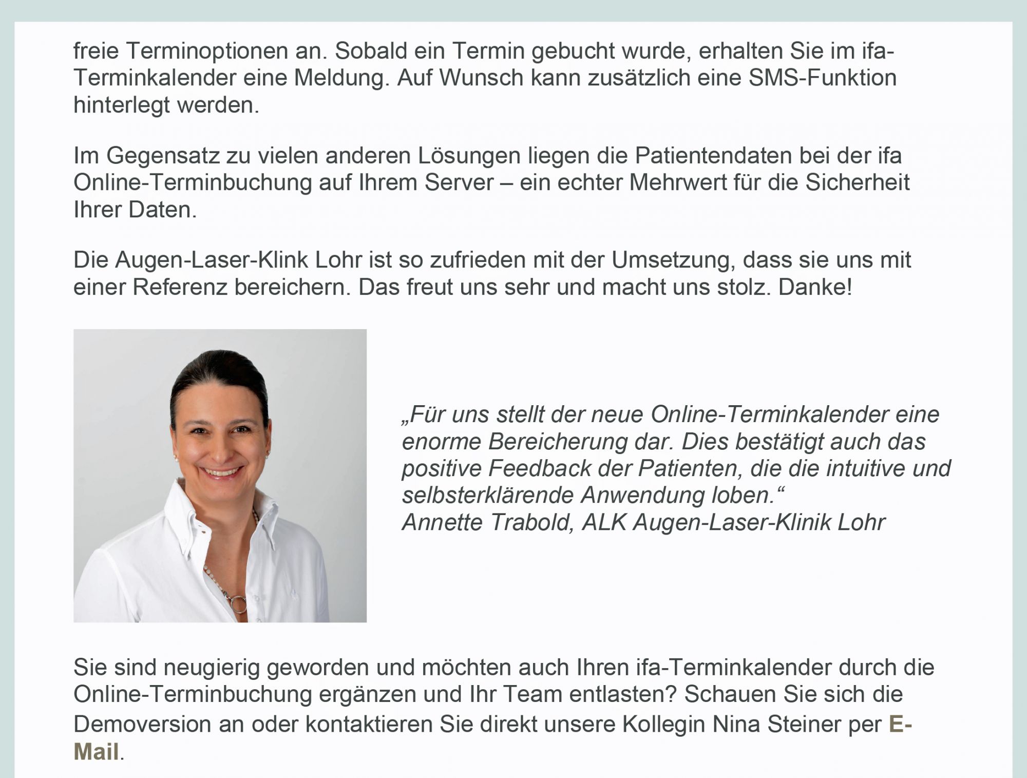 Anbei der aktuelle Newsletter von ifa Systems, der auch anderen Anwendern das Projekt vorstellen möchte!